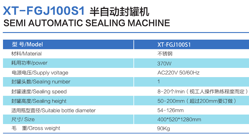 特點描述:1、該設備是我公司生產的傳統(tǒng)型封罐機,采用傳統(tǒng)封罐原理,罐身旋轉封口。