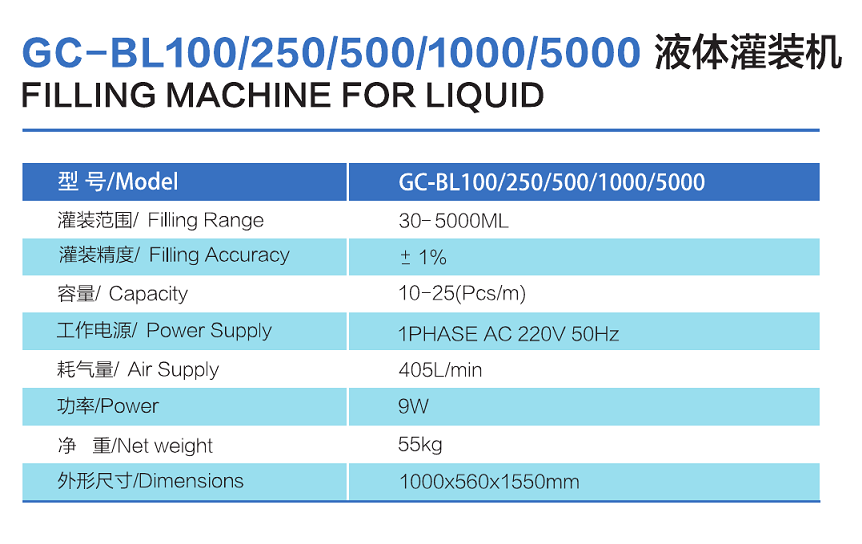 GC-BL100/250/500/1000/5000 液體灌裝機